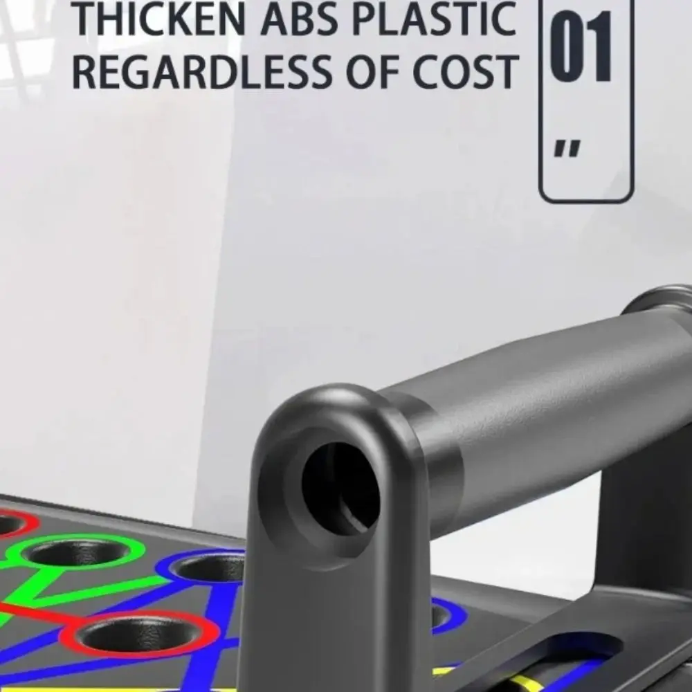Color: BlackMaterial: ABSSize:62*18.5*10.5cm(24.41*7.28*4.13in)Suitable for fitness enthusiastsFunction: 22/28 types of push up boards [non blue adhesive handle]Packaging: 1 set of Push-up Board